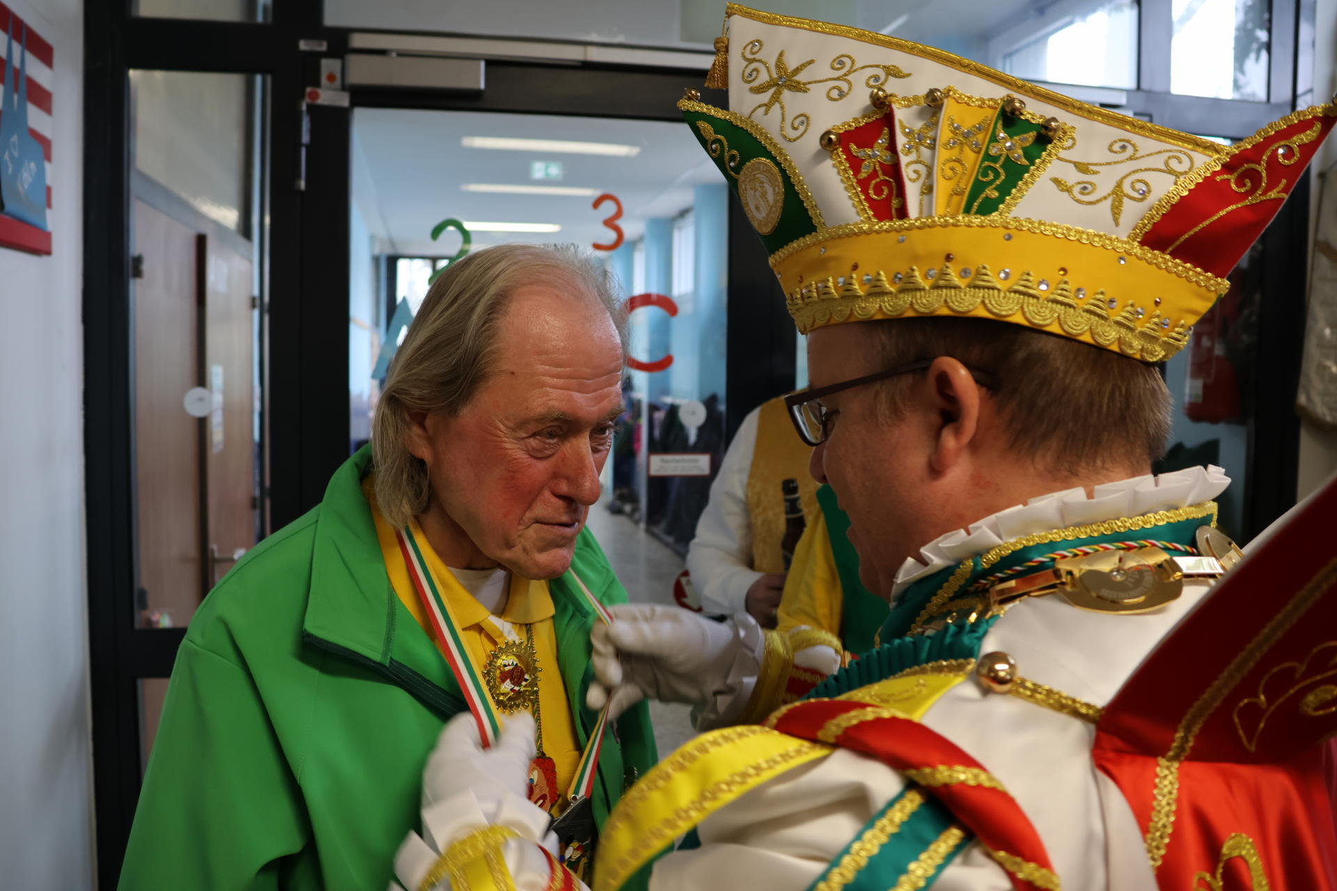 Prinz Michael II. und sein Hoftaat besuchten den Ausschuss der Worringen Grundschulen für den Kinderkarnevalszug - besser bekannt als KiKa. Dort wurden die mit viel Liebe zum Detail gebauten Wagen für den Zug besichtigt.