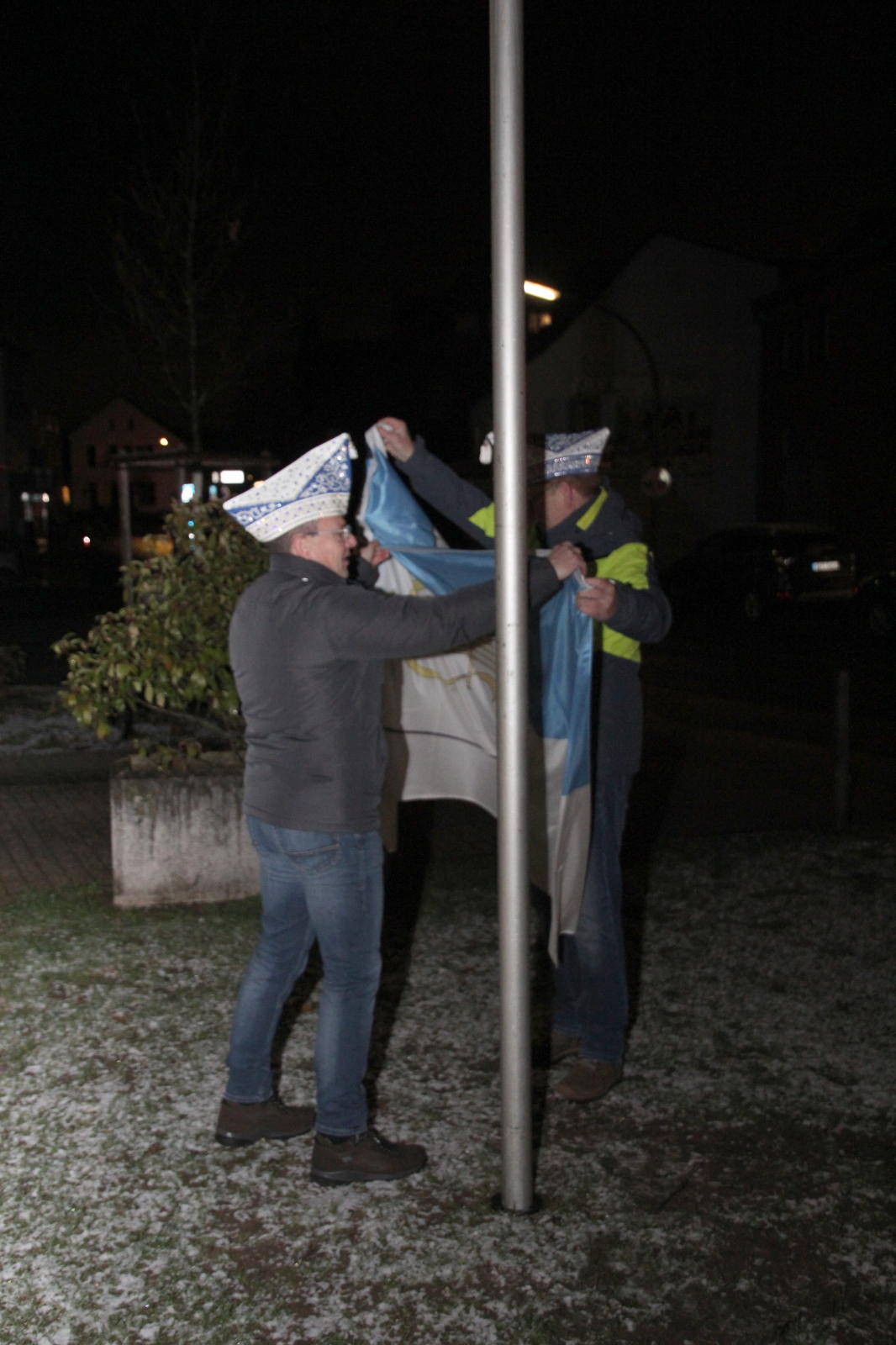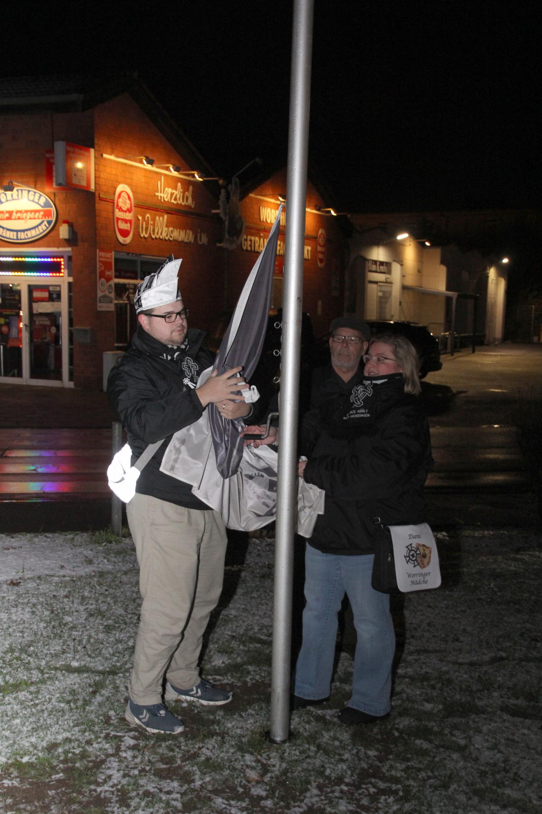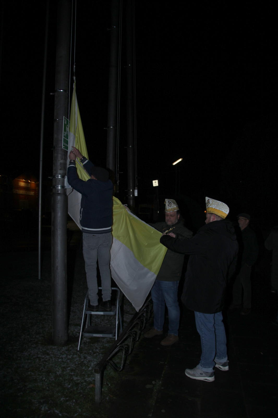 Am 2.1. wurden vor dem Wohnzimmer unseres designierten Prinzen Michael II. die Fahnen Worrigens, des Festkommitees und der Worringer Karnevalsvereine gehisst.