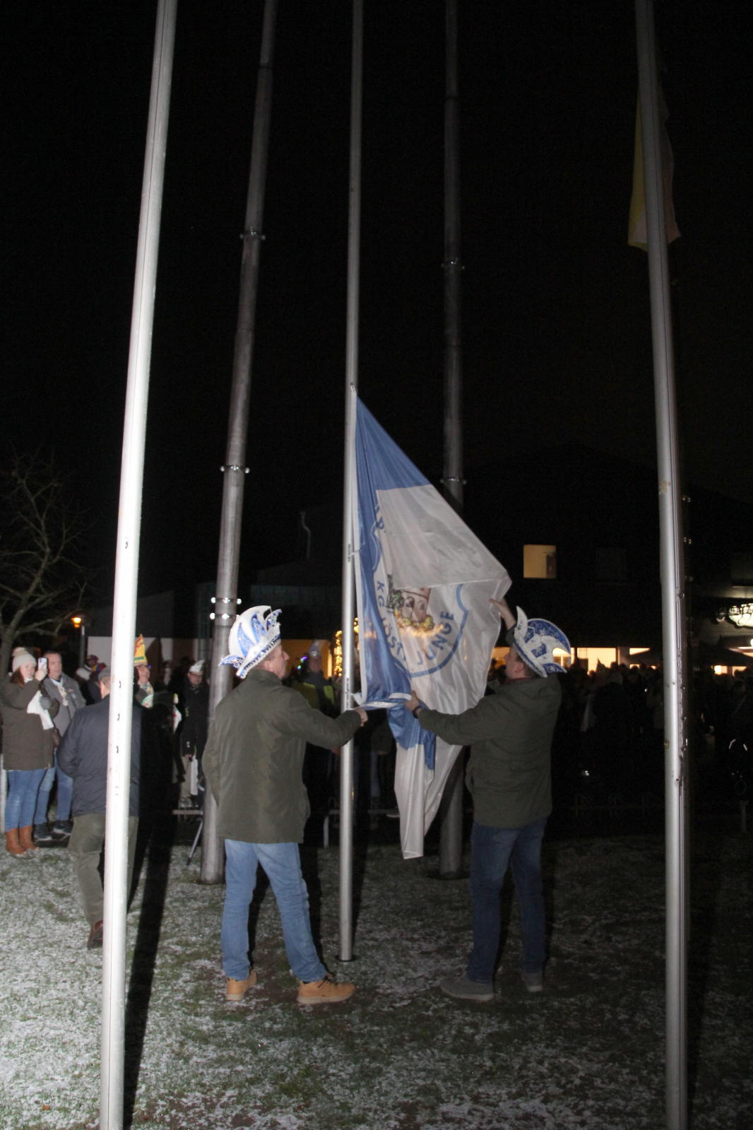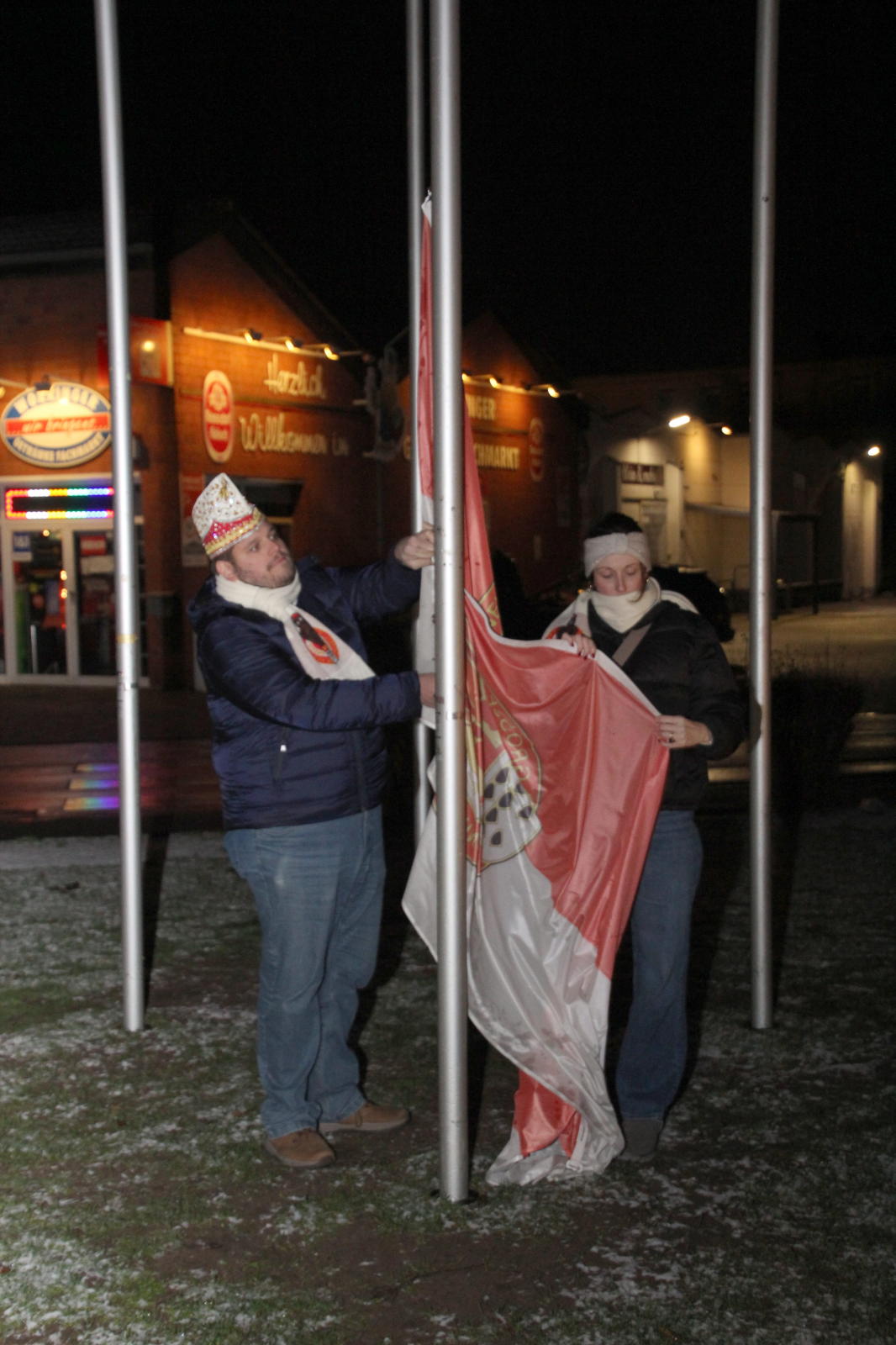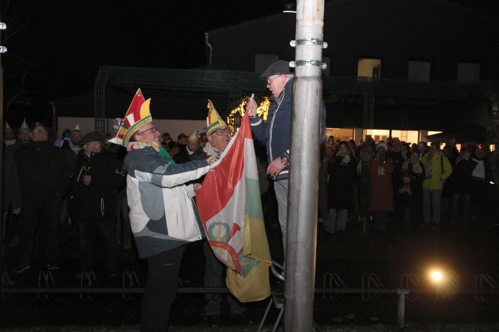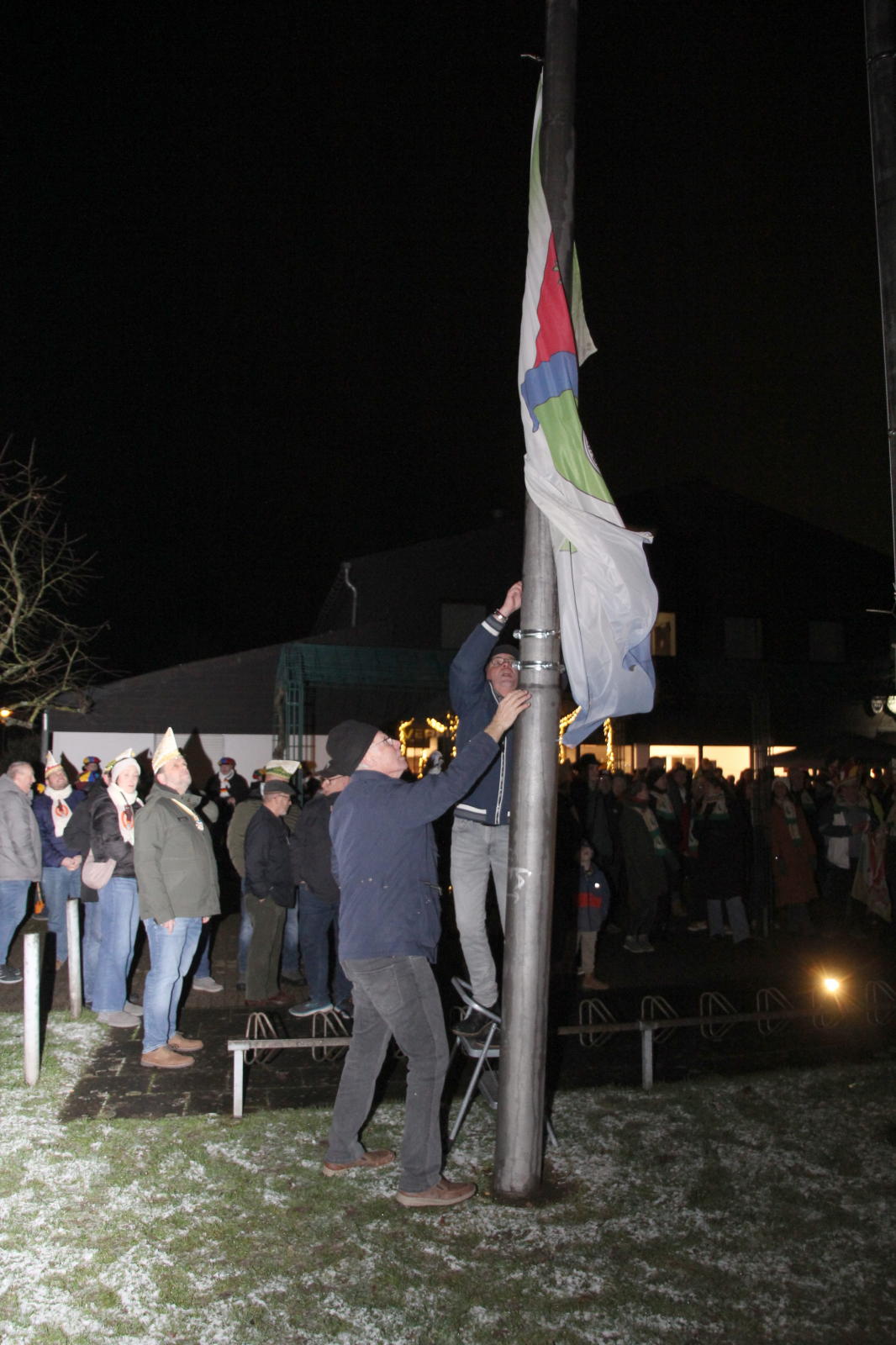 Am 2.1. wurden vor dem Wohnzimmer unseres designierten Prinzen Michael II. die Fahnen Worrigens, des Festkommitees und der Worringer Karnevalsvereine gehisst.